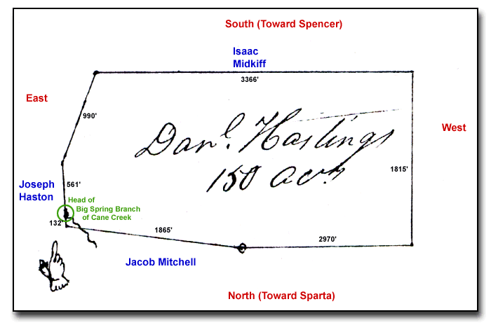 Source: Tennessee General Grant #535 Certificate of Survey for Daniel Hastings of White Co, TN (available from the TN State Library & Archives)