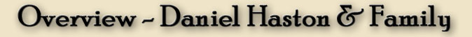 evidence to connect her to Daniel as his daughter. David Haston - David was, apparently, the oldest son of Daniel Haston. He was born on May 6, 1777 in Virginia and married Margaret (Peggy) Roddy on May 5, 1800 in Knox County, TN. One of the most intriguing mysteries of Haston family research is an unexplained Roddy-McComisky connection that seems to be associated, in some way, with Peggy's family. The David Haston family Bible record indicates that David and Peggy had 13 children. They moved to White County, TN and lived adjacent to David's father on the Haston Big Spring near the mouth of Cane Creek as it flows into the Caney Fork River. David was very active in civic affairs, as a Justice of the Peace in White County and then later, when a new county was created from that county, in Van Buren County, TN. One account states that he and Peggy were active Cumberland Presbyterians. David died on April 1, 1860 and is buried in the Big Fork Cemetery very near his home. Most of what we know about David Haston is incorporated into his timeline which exists on this site. Some of David and Peggy's children moved to Missouri and other places westward from Tennessee. Joseph Haston - Joseph was born on January 9, 1780 according to one reported source, but the location of his birth is not stated, as is also true of his marriage to Sarah Ann Criely (Creely). Events in the timeline of Daniel's life seem to indicate that Joseph, as well as David, were born in Powell's Fort Valley on the Massanutten Mountain in Shenandoah County ,VA. As an adult, Joesph lived with Daniel, his father, in Knox County, TN and settled adjacent to Daniel in White County, TN prior to the formation of that county. Joseph's name appears on the petition for the formation of White County. He was appointed as constable of his district in 1824 and again in 1826, but died sometime prior to 1830. He was buried near his father in the Big Fork Cemetery. Joseph's widow, Sarah lived until the mid to late 1850s. Most of what we know about Joseph Haston is incorporated into his timeline which exists on this site. Catherine Haston Austin - Catherine is reported in one source to have been born in 1776, but it is more likely that her birth occurred in the early 1790s. A biographical sketch of one her sons indicates that she was born in Tennessee. In about 1819, she married a prominent southern White County land owner, John Austin. Mr. Austin's first wife, Rachel Denny, had died at some unknown time prior to that. John and Catherine had six children and Catherine also became the stepmother of seven children born to Rachel. After Catherine's death, in 1843, John Austin married again to Mary Ann Todd on January 17, 1844. Catherine is buried in the Lost Creek Austin Cemetery in the Lost Creek area of southern White County, TN. Our knowledge of Catherine Haston is limited and what we know is incorporated into her timeline on this site. Isaac C. Haston/Hastings - Isaac was born in 1794 or 1795, probably in Knox County, TN. He married Agnes Simpson in 1813 and enlisted for service in the War of 1812, shortly after his marriage. Isaac was the most adventuresome pioneer of the known children of Daniel Haston. When he was about 10 years old he moved from Knox County, with his father, to the Indian hunting grounds of middle Tennessee that would soon become White County. In his adult life it appears that he struggled to establish himself and his family in White County. Thus, in the mid 1820s he moved to the Hiwassee District (lands acquired from Cherokee Indians in 1819) and lived there, in Monroe and McMinn Counties of TN, for almost a decade. After perhaps a brief return stint to White County, Isaac moved his family to Greene County, MO in about 1835, where he lived until 1857, when he loaded his family belongings into an ox cart and moved to what is now Sonoma County, CA. He died there on March 27, 1872 and is buried in the Bennett Valley Cemetery of that county. In Missouri and in California, the spelling of his surname vacillated between Hastin/Hasten and Hastings, gradually favoring the Hastings spelling. Most of what we know about Isaac has been incorporated into his timeline on this site. Jesse Haston - Jesse was born in about 1796, probably in the same Knox County, TN location as Isaac. His 1815 marriage to Elizabeth Gillentine, daughter of Nicholas and Jane Elizabeth Terry Gillentine, is the only documented historical clue that we have to tie Jesse to the Daniel Haston family. The Nicholas Gillentine family lived less than a mile from the Daniel Haston home. But DNA evidence from a male descendent of Jesse has confirmed Jesse's connection to the Daniel Haston family. Apparently, Jesse and Elizabeth moved to Howard County, MO soon after their marriage. Jesse never appeared on any of the existing White County tax records. Their son, Jesse, Jr., stated that his father moved from east Tennessee to Missouri in 1818. In 1847, the same year that Elizabeth died, Jesse married Susan Catherine M. White. Susan died just five years later and Jesse married Ann Juilet Barnes in 1853. More than twenty children were born to Jesse, through these three wives. As a slave-owning civilian, Jesse was killed by Federal soldiers on November 8, 1864 in a dispute over Jesse's horses. He was buried on his family farm, about three miles east of Glasgow, MO. Jeremiah MC Haston - Jeremiah MC Hastings/Haston lived in the same general area of MO as Isaac Haston/Hastings in the 1840s and 1850s. Jeremiah's identity as a possible descendant of Daniel Haston was a mystery to most Haston family researchers for a long time. He was born in Tennessee and his age would have been in the same range as Daniel Haston's children, but researchers were not able to locate documented evidence to prove that he was related to Daniel. DNA results from a male descendant of Jeremiah MC Haston has now confirmed his connection to Daniel's family. An "MC" middle was given to two of David Haston's chi